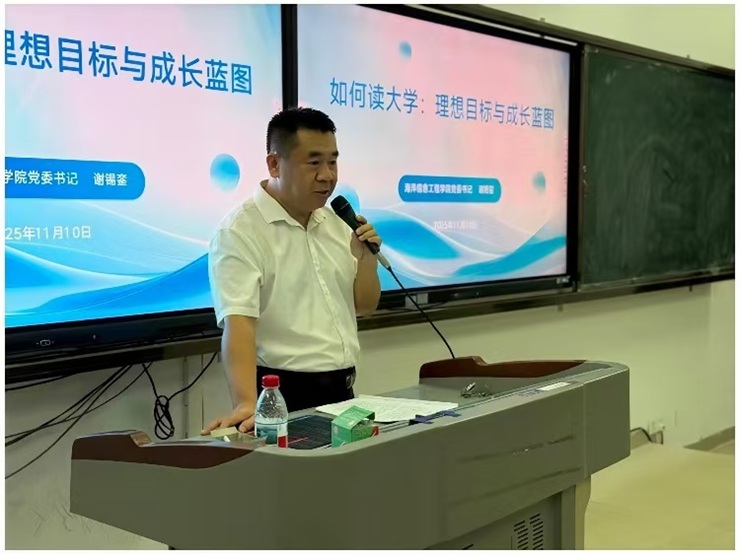 为指导和帮助2025级新生更好地融入大学学习,科学规划大学生活,11月10日晚上,suncitygroup太阳集团党委书记谢锡銮在4204教室主讲“如何读大学:理想目标与成长蓝图”主题讲座。学工办负责人、团委负责人及2025级全体学生参加。讲座由学工办主任邸泽军主持。